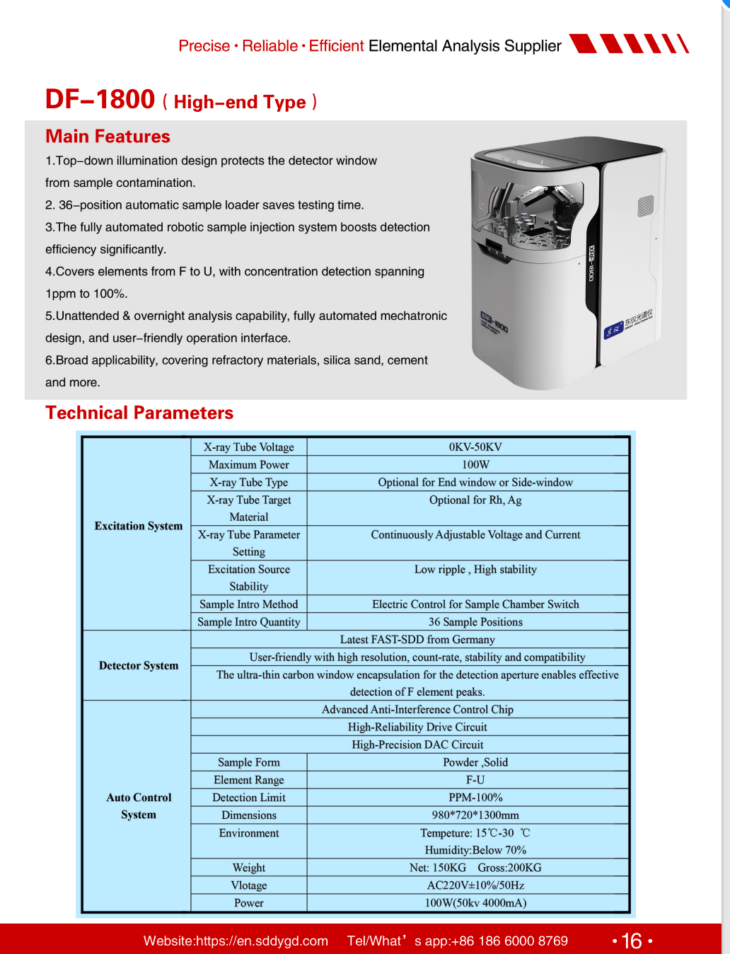 1.Analysis element range F-U;Concentration range: ppm ~ 100%;
